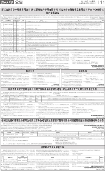 浙江省浙商资产管理有限公司 浙江浙易资产管理有限公司 对义乌市怡蒙化妆品有限公司等15户企业债权资产处置公告