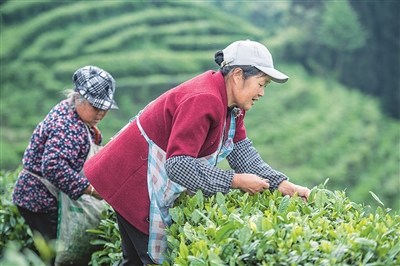 4月20日,茶农在贵州省六盘水市六枝特区落别乡鸿森茶场采摘“谷雨茶”。