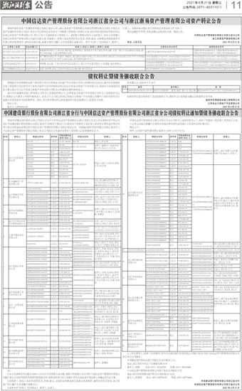 中国建设银行股份有限公司浙江省分行与中国信达资产管理股份有限公司浙江省分公司债权转让通知暨债务催收联合公告
