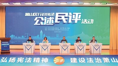法治工作做得好不好,需要群众来接受评价。2020年12月,为推动破解行政执法难题,该区又创新实施行政执法“公述民评”,区政府5个部门的负责人,现场接受市民代表的提问和评议。此举提升了人民群众法治建设参与度、知晓度和满意度,被评为“2020年度全省十大普法影响力事件”。