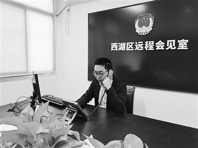 “刘某,你好,我是你的辩护律师,你是否能听清我说的话?”“可以听见。”西湖区法律援助中心远程会见室内,律师和被关押在看守所的犯罪嫌疑人刘某正通过公共法律服务人工智能自助机进行“云会见”。受疫情影响,律师无法进入看守所会见当事人,但在押的犯罪嫌疑人的诉讼权利不能被剥夺、辩护律师的会见权不能被忽视。