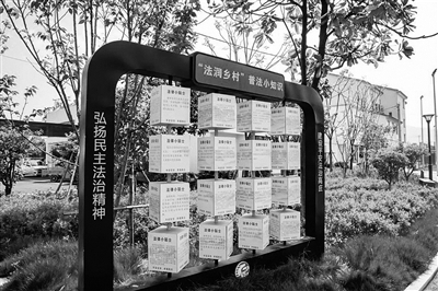 巍巍青山四周环绕,翠竹绵延碧浪滚滚。置身安吉余村,不仅可以领略到秀丽旖旎的自然风光,还能感受到它无处不在的法治气息:村规民约刻写在墙上,宣传橱窗里张贴着党员民主议事清单,法治文化长廊、法律图书角散落在乡村各个角落。余村以民主凝聚人心,以平安保障发展,以法治促进和谐,获得了“全国民主法治示范村”等多项荣誉。