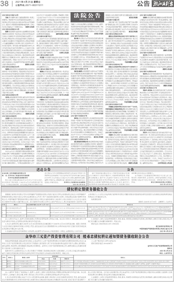 金华市三元资产投资管理有限公司 楼希忠债权转让通知暨债务催收联合公告
