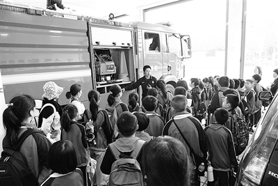 近日,桐乡市实验小学教育集团人民小学的师生,走进桐乡市消防救援大队,零距离学习消防安全知识。消防员用浅显易懂的语言,讲解了如何正确用火用电、遇到火灾如何逃生自救等知识。通讯员 沈洁