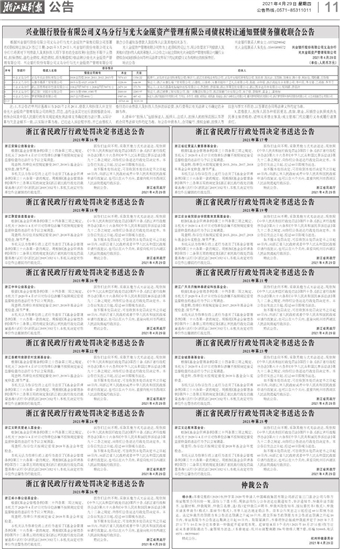 兴业银行股份有限公司义乌分行与光大金瓯资产管理有限公司债权转让通知暨债务催收联合公告