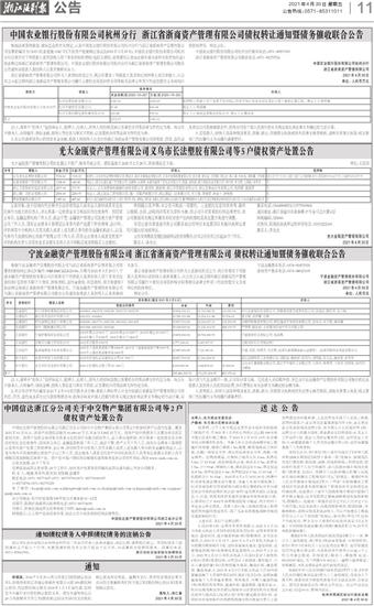 中国农业银行股份有限公司杭州分行 浙江省浙商资产管理有限公司债权转让通知暨债务催收联合公告