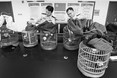 近日,台州市公安局黄岩区分局民警精心照顾7只画眉鸟。这些鸟儿是分局治安大队在查处一起非法收购珍贵、野生动物案件中查获解救的,为国家二级保护动物。警方完成初步调查工作后,将把这些画眉鸟移交给当地野生动物救护站并放归自然。