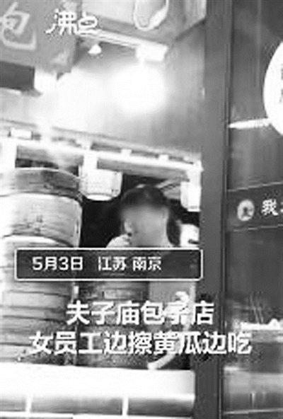 南京一包子店女员工边擦黄瓜丝边吃 官方通报:立即停业整顿