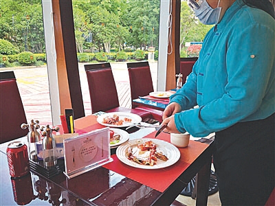 除了需要点菜的用餐,吃多少拿多少的自助餐又是怎样的?5月5日中午,记者来到温州香格里拉大酒店自助餐厅。餐厅的每张餐桌上都立着一块提醒牌:不剩菜、不剩饭,请您一起节约粮食,杜绝浪费。