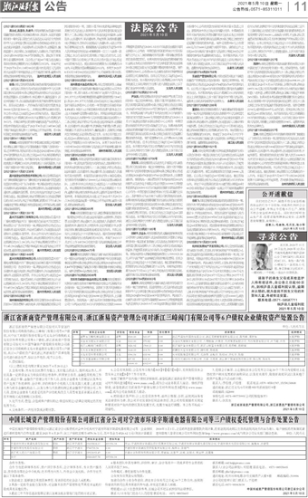 浙江省浙商资产管理有限公司、浙江浙易资产管理公司对浙江三峰阀门有限公司等6户债权企业债权资产处置公告