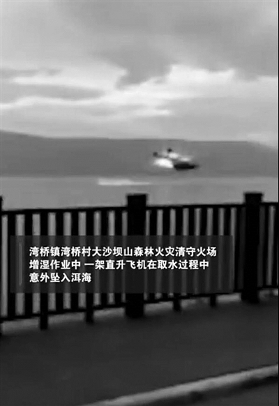 5月10日,云南大理湾桥镇湾桥村大沙坝山森林火灾清守火场、增湿作业中,一架直升飞机在取水过程中意外坠入洱海。9日,大沙坝山发生森林火情,经全力扑救,明火于10日6时40分全部扑灭,救援过程中有M-171直升机3架次进行吊桶灭火洒水。
