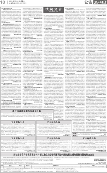 (2021)浙1004民初89号 周丽君、陈卫军:本院受理原告台州银行股份有限公司与你们为信用卡纠纷一案,现已审理终结。因你们下落不明,依照《中华人民共和国民事诉讼法》第九十二条之规定,向你们公告送达本院(2021)浙1004民初89号民事判决书。判令被告周丽君于判决发生法律效力之日起十日内偿还原告台州银行股份有限公司信用卡透支本金39469.84元及截止2020年11月1日的利息11741.60元,并支付自2020年11月2日起至实际偿还之日止按月利率2%计算的利息、违约金等;被告陈卫军对上述款项负连带清偿责任,被告陈卫军承担保证责任后,有权向被告周丽君追偿。如未按本判决指定的期间履行给付金钱义务,应当依照《中华人民共和国民事诉讼法》第二百五十三条之规定,加倍支付迟延履行期间的债务利息。案件受理费1080元,公告费650元,合计人民币1730元,由你们负担。自本公告发出之日起,经过六十日,即视为送达。如不服本判决,可在判决书送达之日起十五日内,向本院递交上诉状,并按对方当事人的人数提出副本,上诉于浙江省台州市中级人民法院(上诉案件受理费1080元在提交上诉状时预交,在上诉期内未预交的,应当在上诉期满后七日内预交,逾期不交按自动撤回上诉处理。款汇:台州市财政局,帐号:19-900001040000225089001,开户银行:中国农业银行股份有限公司台州市分行)。台州市路桥区人民法院(2021)浙1004民初439号 徐利君:本院受理原告浙江台州路桥农村商业银行股份有限公司与你为信用卡纠纷一案,现已审理终结。因你下落不明,依照《中华人民共和国民事诉讼法》第九十二条之规定,向你公告送达本院(2021)浙1004民初439号民事判决书。判令你于判决发生法律效力之日起十日内偿还原告浙江台州路桥农村商业银行股份有限公司信用卡透支本金9783.84元及截至2020年10月21日的利息1940.72元、违约金646.90元,并支付自2020年10月22日起至实际履行之日止按章程及合约规定计算的利息、违约金(利息、违约金以月利率2%为限)。如未按本判决指定的期间履行给付金钱义务,应当依照《中华人民共和国民事诉讼法》第二百五十三条之规定,加倍支付迟延履行期间的债务利息。案件受理费178元,公告费650元,合计人民币828元,由你负担。自本公告发出之日起,经过六十日,即视为送达。如不服本判决,可在判决书送达之日起十五日内,向本院递交上诉状,并按对方当事人的人数提出副本,上诉于浙江省台州市中级人民法院(上诉案件受理费178元在提交上诉状时预交,在上诉期内未预交的,应当在上诉期满后七日内预交,逾期不交按自动撤回上诉处理。款汇:台州市财政局,帐号:19-900001040000225089001,开户银行:中国农业银行股份有限公司台州市分行)。台州市路桥区人民法院(2021)浙1004民初440号 池荷芳:本院受理原告浙江台州路桥农村商业银行股份有限公司与你为信用卡纠纷一案,现已审理终结。因你下落不明,依照《中华人民共和国民事诉讼法》第九十二条之规定,向你公告送达本院(2021)浙1004民初440号民事判决书。判令你于判决发生法律效力之日起十日内偿还原告浙江台州路桥农村商业银行股份有限公司信用卡透支本金22957.44元及截至2020年8月12日的利息4520.43元、违约金1506.81元,并支付自2020年8月13日起至实际履行之日止按章程及合约规定计算的利息、违约金(利息、违约金以月利率2%为限)。如未按本判决指定的期间履行给付金钱义务,应当依照《中华人民共和国民事诉讼法》第二百五十三条之规定,加倍支付迟延履行期间的债务利息。案件受理费610元,公告费650元,合计人民币1260元,由你负担。自本公告发出之日起,经过六十日,即视为送达。如不服本判决,可在判决书送达之日起十五日内,向本院递交上诉状,并按对方当事人的人数提出副本,上诉于浙江省台州市中级人民法院(上诉案件受理费610元在提交上诉状时预交,在上诉期内未预交的,应当在上诉期满后七日内预交,逾期不交按自动撤回上诉处理。款汇:台州市财政局,帐号:19-900001040000225089001,开户银行:中国农业银行股份有限公司台州市分行)。台州市路桥区人民法院(2021)浙1004民初568号 林步章:本院受理原告田峪宁与你为民间借贷纠纷一案,现已审理终结。因你外出地址不详,依照《中华人民共和国民事诉讼法》第九十二条之规定,向你公告送达本院(2021)浙1004民初568号民事判决书。判令你于判决发生法律效力之日起十日内归还原告田峪宁借款本金人民币24077元,并以24077元为本金基数支付相应利息(2019年11月25日至2019年12月30日期间的利息按年利率12%计算,2019年12月31日起至实际履行之日止的利息按年利率15%计算)。如未按本判决指定的期限履行给付金钱义务,则依照《中华人民共和国民事诉讼法》第二百五十三条之规定,加倍支付迟延履行期间的债务利息。案件受理费440元,公告费650元,合计1090元,由你负担。自本公告发出之日起,经过六十日,即视为送达。如不服本判决,可在判决书送达之日起十五日内,向本院递交上诉状,并按对方当事人的人数提出副本,上诉于浙江省台州市中级人民法院(上诉案件受理费440元在提交上诉状时预交,在上诉期内未预交的,应当在上诉期满后七日内预交,逾期不交按自动撤回上诉处理。款汇:台州市财政局,帐号:19-900001040000225089001,开户银行:中国农业银行股份有限公司台州市分行)。台州市路桥区人民法院(2020)浙1004民初5