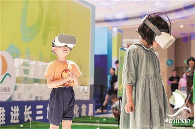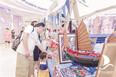 在集市区,非遗作品、文创产品、海鲜制品应有尽有。人们一边品尝岱山特色美食,一边欣赏着充满“海味”的渔绳结、渔民画、船模等非遗手工艺品和特色文创产品,纷纷竖起大拇指;在打卡区,小朋友们在父母的陪伴下,争相围着岱山旅游卡通形象“蟹哥哥”“黄鱼妹”拍照;沙滩高尔夫和VR体验区也特别受欢迎,VR体验后再挥杆、进洞,体验一把海上高尔夫,感受到的是海上运动的别样欢乐……
