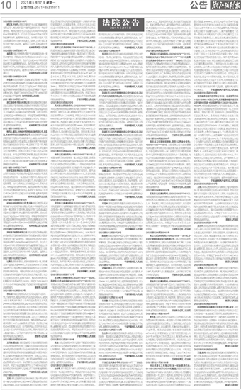(2021)浙0108民初1407号 浙江绿森电子商务有限公司:本院受理原告杭州姚生记食品有限公司诉被告浙江绿森电子商务有限公司买卖合同纠纷一案,因你下落不明,现依法向你公告送达起诉状副本、应诉通知书、举证通知书及开庭传票等。自本公告发出之日起,经过60日即视为送达。本案适用简易程序审理,提出答辩状和举证期限为公告期满后的15日内。本院定于2021年8月2日下午14时30分在本院第四法庭公开开庭审理,逾期将依法缺席判决。杭州市滨江区人民法院(2021)浙0108民初1601号 柳风山、崔陆、吉林省时利和物流运输有限公司、姜喜运、长春时利和汽车经销有限公司:本院受理原告信远融资租赁(浙江)有限公司诉被告柳风山、崔陆、吉林省时利和物流运输有限公司、姜喜运、长春时利和汽车经销有限公司融资租赁合同纠纷一案,因你们下落不明,现依法向你们公告送达起诉状副本、应诉通知书、举证通知书及开庭传票等。自本公告发出之日起,经过60日即视为送达。本案适用简易程序审理,提出答辩状和举证期限为公告期满后的15日内。本院定于2021年8月2日下午15时00分在本院第四法庭公开开庭审理,逾期将依法缺席判决。杭州市滨江区人民法院(2021)浙0108民初1768号 环宇蓝海技术有限公司、陈亮:本院已受理原告杭州由莱科技有限公司诉被告环宇蓝海技术有限公司、陈亮网络侵权责任纠纷一案,因你们下落不明,现依法向你们公告送达起诉状副本、应诉通知书、举证通知书及开庭传票等。自本公告发出之日起经过60日,即视为送达。本案适用普通程序审理。提出答辩状和举证期限为公告送达期满后的15日内,本院定于2021年7月22日9时30分在第五法庭公开开庭审理,逾期本院将依法缺席审理。杭州市滨江区人民法院(2021)浙0108民初1816号 杭州住啦科技有限公司、袁少亭:本院受理原告夏昶晖诉被告杭州住啦科技有限公司、袁少亭房屋买卖合同纠纷一案,因你们下落不明,现依法向你们公告送达起诉状副本、应诉通知书、举证通知书及开庭传票等。自本公告发出之日起,经过60日即视为送达。本案适用简易程序审理。提出答辩状和举证期限为公告送达期满后的15日内。本院定于2021年07月29日9:00在本院第九法庭公开开庭审理,逾期将依法缺席判决。杭州市滨江区人民法院(2020)浙0108民初5975号 深圳市子牧服饰有限公司:本院对原告百世物流科技(中国)有限公司诉你被告深圳市子牧服饰有限公司服务合同纠纷一案已审理终结。现依法向你公告送达本院民事判决书[案号:(2020)浙0108民初5975号]。自公告之日起60日内来本院领取裁判文书,逾期则视为送达。如不服本判决,可在公告期满后15日内,向本院递交上诉状及副本,上诉于浙江省杭州市中级人民法院。逾期未上诉的,本判决即发生法律效力。杭州市滨江区人民法院