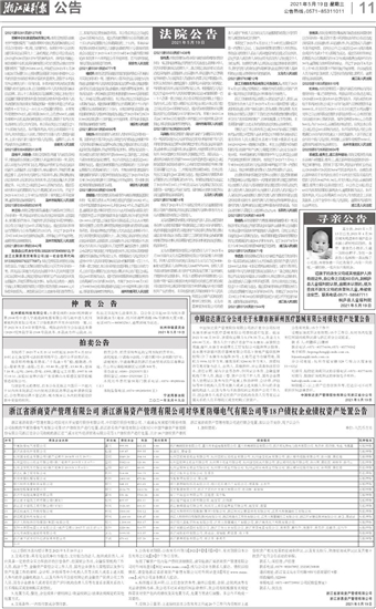 中国信达浙江分公司关于永康市新丽州医疗器械有限公司债权资产处置公告