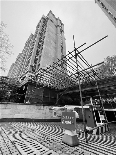 58幢住宅40幢掉墙砖,居民不得不撑伞走过