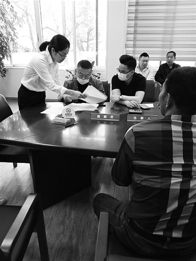 近日,温岭市法院法官赵怡璐联合人民调解员,对一起因工人在施工过程中意外从高处坠落受伤引起的矛盾纠纷进行调解。最终,双方当事人握手言和,当场达成了调解协议。通讯员 金宇婷 摄