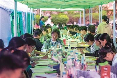 5月24日,漾濞一中高三年级学生在帐篷下学习。