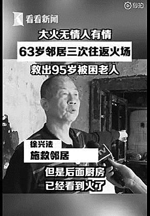 邻里情! 63岁老人冲进火场救出95岁邻居