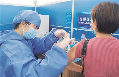 5月27日,市民在广州天河体育中心新冠疫苗临时接种点接种疫苗。