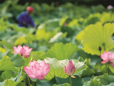 这两天,杭州萧山湘湖的荷花次第绽放,有些“性子急”的已经探出水面随风摇曳,吸引游客欣赏这初夏美景。