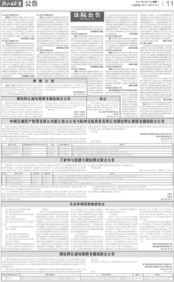 中国长城资产管理有限公司浙江省分公司与杭州宝航投资有限公司债权转让暨债务催收联合公告