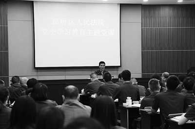 日前,台州市路桥区法院院长叶海华以“回味百年创业史,开启百年新征程”为题,围绕党史学习和法院工作,为全院干警讲授了一堂精彩生动的主题党课。通讯员 陈敏 摄