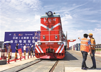 这是6月8日在义乌西站拍摄的中欧班列茶叶专列。