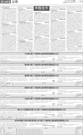 浙江正方交通建设有限公司与杨兰兰债权转让通知暨债务催收联合公告