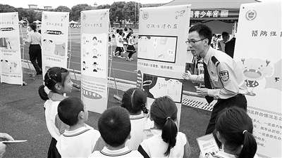 近日,在2021年衢州市流动少年宫现场会活动上,一群孩子围着一群青年民警不断提问,虽然问题五花八门,但都得到了专业解答。