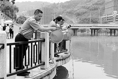 | 6月9日,文成县检察院与法院、农业农村局联合开展增殖放流生态修复活动,将500万尾白鲢鱼陆续放流至泗溪河、珊溪水库、百丈漈水库、黄坦济下水库等公共水域。 通讯员 孙丽纳 见习记者 李琪桉 |
