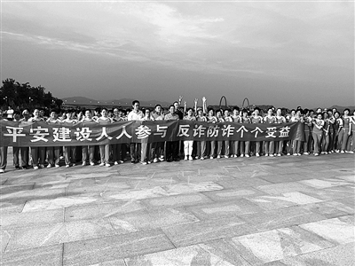 “刷单、贷款、要账号,每种套路都是诈骗分子手里的刀,不听不信不转账是最棒的妙招,什么兼职、什么投资满耳呱噪,什么小妹、什么帅哥都是编造,不贪便宜就不会落入骗子圈套……”每晚华灯初上,杭州市滨江区浦沿街道的文化广场上,伴着“反诈”广场舞的欢快节拍,150余名平安志愿者翩翩起舞,吸引了众多过往居民驻足围观。