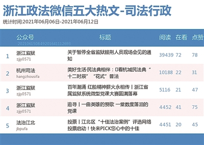 司法行政榜上,“浙江监狱”稳定发挥,蝉联冠军宝座。不仅如此,该公众号有三篇文章入围热文榜前五名,《关于暂停全省监狱服刑人员现场会见的通知》一文获得第一名。因疫情防控需要,经浙江省监狱管理局疫情防控指挥部研究决定,暂停全省监狱服刑人员现场会见,可视电话会见和远程视频会见正常进行。恢复时间请关注“浙江监狱”微信公众号,及时掌握相关信息。