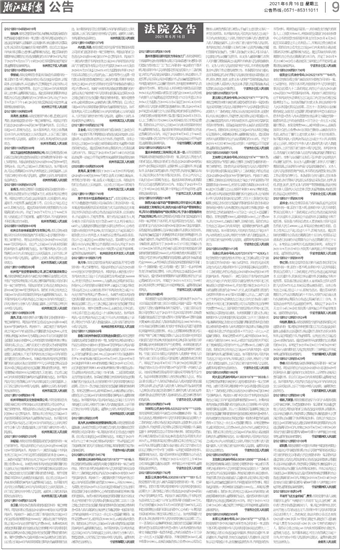 高为民、杭州静如投资管理有限公司:本院受理原告香溢融通(上海)投资有限公司与被告高为民、杭州静如投资管理有限公司合同纠纷一案,现依法向你们公告送达开庭传票。自公告之日起经过60日即视为送达。本案定于2021年8月17日上午9时30分在本院审判大楼十二号审判法庭公开开庭审理,你们若无正当理由拒不到庭,本院将按期开庭并依法缺席裁判。宁波市中级人民法院