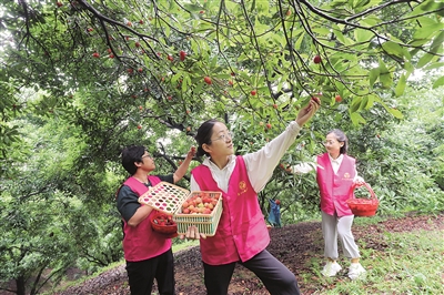 6月20日,德清县莫干山镇燎原村白杨梅种植基地,镇妇联组织志愿者帮助农户采摘杨梅,缓解人员紧缺。时下,燎原村迎来杨梅采收旺季,当地成立“三服务”助农采收小分队,结合直播带货、社户对接、包揽销售等方式进行精准帮扶,促进农民增收。