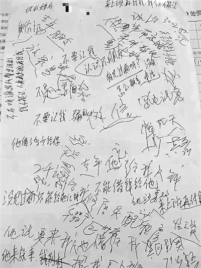 了解事情缘由之后,民警认为阿兵有诈骗的嫌疑,劝阻陈某先不要转账。“他说要来(找)我”,陈某这样在纸上写道,还把手机微信的聊天记录翻出来给民警看。