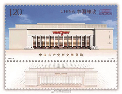 为祝贺中国共产党历史展览馆正式开馆,经国家邮政局批准,2021年增发《中国共产党历史展览馆》特种邮票1套1枚,邮票面值为1.20元,发行数量为820万套,由中国邮政集团有限公司制作发行。此外,中国共产党历史展览馆主题邮局正式揭牌,专属邮编“100100”启用。