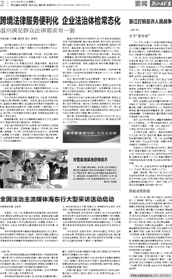 “自政法队伍教育整顿开展以来,我们围绕为群众办实事、为企业解难题这一工作重点,以跨境法律服务、企业法治体检等常态化法律服务为切入点,用实实在在的成效赢得群众好口碑。”温州市司法局党委书记、局长卢斌说。