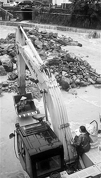工人被困激流中村干部急中生智巧用挖掘机救人