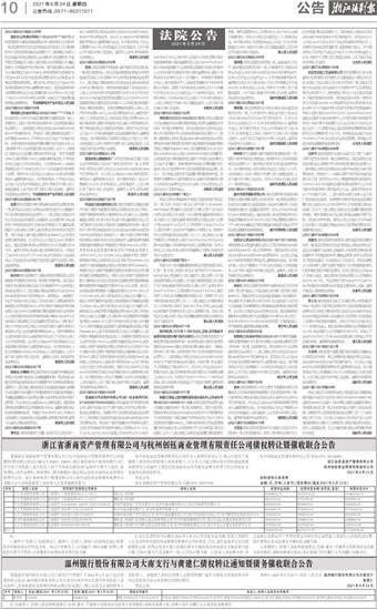(2021)浙1081民初1821号 王永明:本院受理中国建设银行股份有限公司温岭支行诉你信用卡纠纷一案,已审理终结,现依法向你公告送达(2021)浙1081民初1821号民事判决书。自公告之日起60日内来本院领取民事判决书,逾期即视为送达。如不服本判决,可在公告期满后15日内,向本院递交上诉状及副本,上诉于浙江省台州市中级人民法院。逾期本判决即发生法律效力。温岭市人民法院(2021)浙1081民催39号 申请人浙江乐太新材料有限公司因遗失浙江泰隆商业银行温岭大溪支行出具的号码为3130005148851738,金额为50000元,收款人为杭州萧山钱鸿交通器材有限公司的银行承兑汇票一张,向本院申请公示催告,本院决定受理。依照《中华人民共和国民事诉讼法》第二百一十九条的规定,现予公告。自公告之日起60日内,利害关系人应向本院申报权利,届时无人申报权利,本院将依法作出判决,宣告上述票据无效。在公示催告期间,转让该票据权利的行为无效。温岭市人民法院