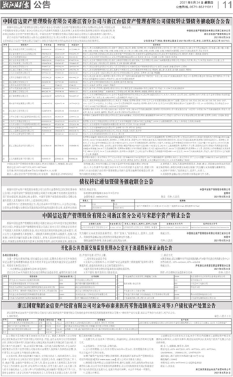 中国信达资产管理股份有限公司浙江省分公司与浙江台信资产管理有限公司债权转让暨债务催收联合公告