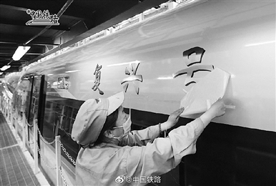 6月23日,3列“复兴号”智能动车CR400AF-Z(8辆标准编组)和CR400AF-BZ(17辆超长编组)在北京“撕膜”,由国旗红、故宫红和祥龙红三色彩带涂装展露,取名“瑞龙智行”的外观完整呈现。工作人员慢慢撕下贴膜,金字“复兴号”第一次展现出来了。复兴号智能动车组长编组有17辆车,这个神奇的17车厢里面1/3是一等座、2/3是商务座,一等座和商务座之间有一道门分隔,车厢更为安静。据悉,6月25日复兴号智能动车组将扩大开行范围。