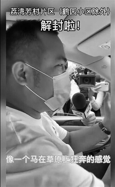 6月24日,广州荔湾区芳村片区(鹤园小区除外),恢复对外人员和交通通行。车主温先生形容心情“就像鸟出笼,马在草原上狂奔”。他说:“20多天没上班了,现在去上班,特别兴奋。”