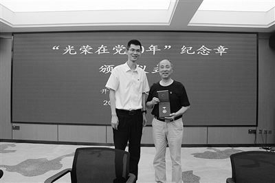 近日,开化县法院开展“忆峥嵘岁月 话使命担当”庆建党百年新老干部座谈会。会上,党组书记、院长为有着55年党龄的退休老干部谢光辉颁发“光荣在党50年”纪念章。随后,谢光辉为大家上了一堂生动的党课。通讯员 詹梦洲