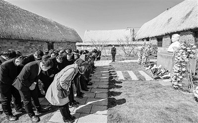 | 在山东荣成滕家镇郭永怀故居,人们向郭永怀雕像鞠躬 |