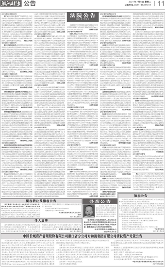 中国长城资产管理股份有限公司浙江省分公司对和润集团有限公司债权资产处置公告