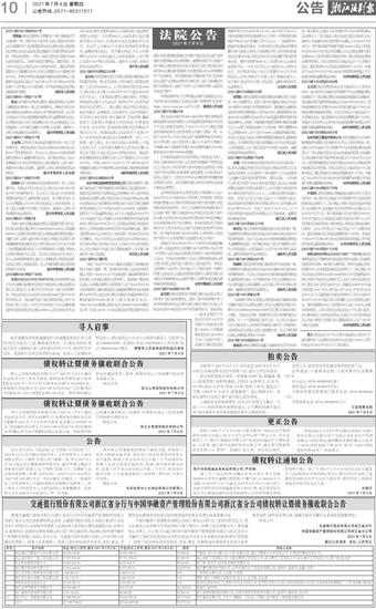 交通银行股份有限公司浙江省分行与中国华融资产管理股份有限公司浙江省分公司债权转让暨债务催收联合公告