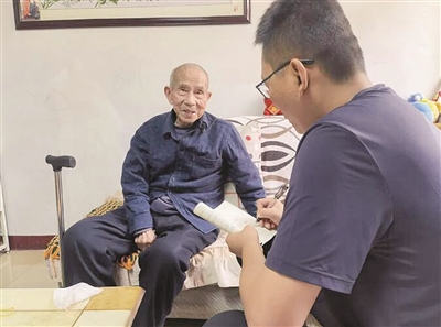 但当我们在他耳边喊出“号兵”两个字时,老人的眼睛明显亮了。他盯着我们,双肩微微用力,似乎要调动起全身的力气。