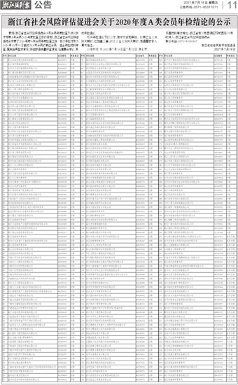 浙江省社会风险评估促进会关于2020年度A类会员年检结论的公示