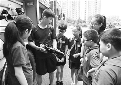 7月17日,杭州市消防救援支队特勤大队举行消防开放日暨暑期英雄典型红色教育活动。曾荣立一等功1次、二等功2次、三等功8次,且刚刚获得全国优秀共产党员称号,并在天安门广场参加了庆祝中国共产党成立100周年大会的消防员程本,向来自华师大附属杭州学校天王星中队天卫小队的小学生们,现场讲述了艰苦训练、灭火救援的故事。
